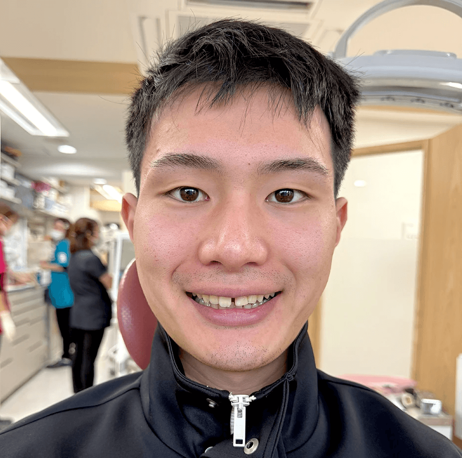 歯の色を変えるだけではなく、被せるセラミック素材の形を調整することで、前歯の隙間の改善、歯の形を整えることもできます。お気軽にご相談ください。